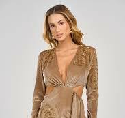 Este vestido curto em veludo combina elegância atemporal com design exclusivo. Destaca-se pelo seu decote em V e uma sedutora abertura lateral, adornado com aplicação de termocolante e delicado bordado feito à mão, que enriquece a peça com um toque de arte e sofisticação. O fechamento é facilitado por um zíper na parte posterior, garantindo um ajuste perfeito e confortável. Observações: Por se tratar de produto manual as peças podem apresentar leves variações de uma peça para outra.